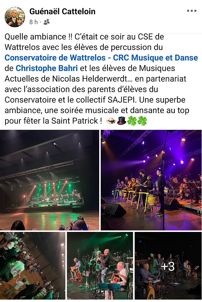« Preacher on a Pony » un morceau commun avec les élèves de percussion du conservatoire de Wattrelos et les élèves des musiques actuelles….premier filage, extrait très court ! Jolie aventure. Merci Christophe